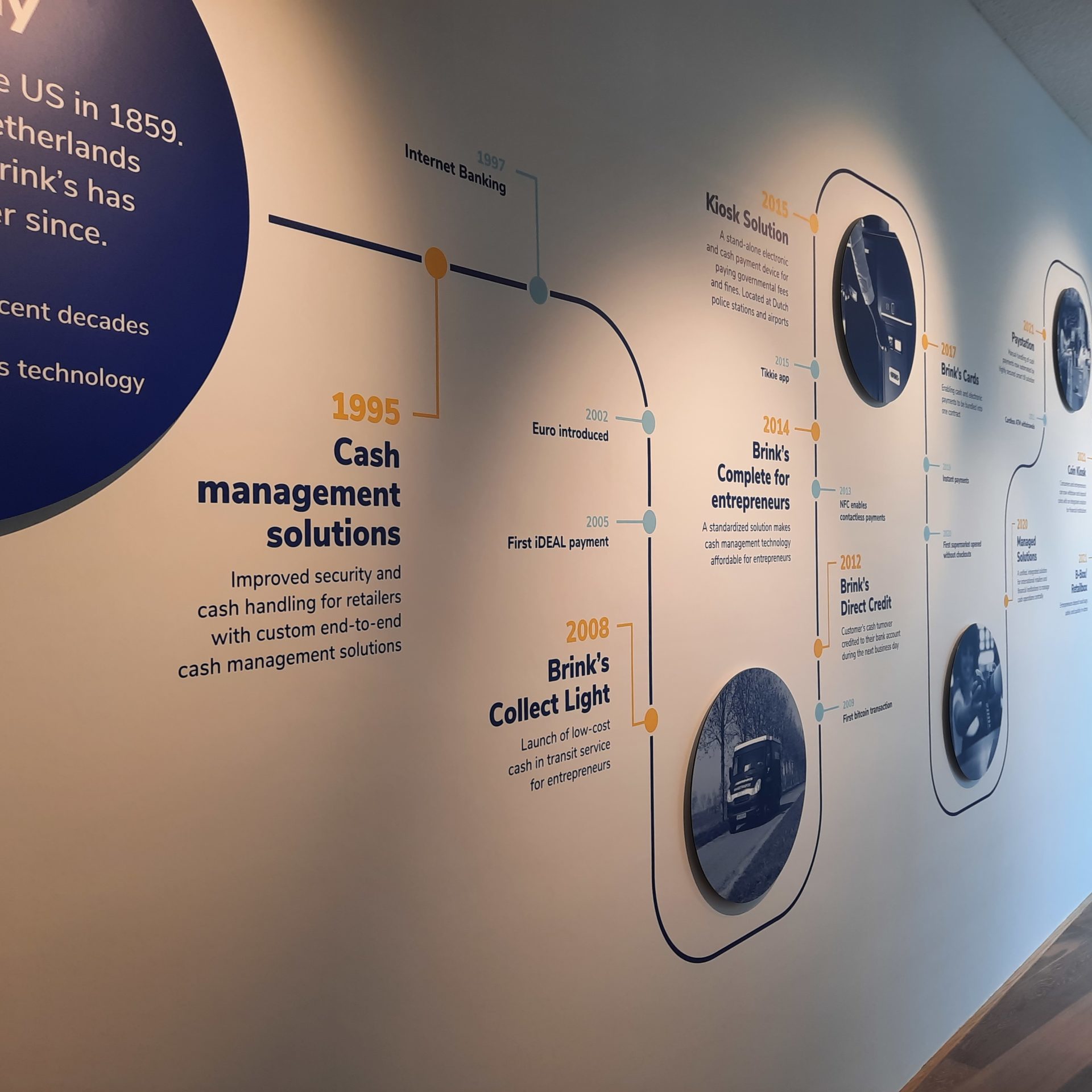 In het kantoorpand van Brinks vindt je het Innovation Center. Een plek waar de geschiedenis en mijlpalen van het bedrijf worden weergegeven, waar ruimte is om in contact te komen met de klant en samen te kijken naar de beste toepassing van de producten van Brinks binnen het bedrijf van de klant.