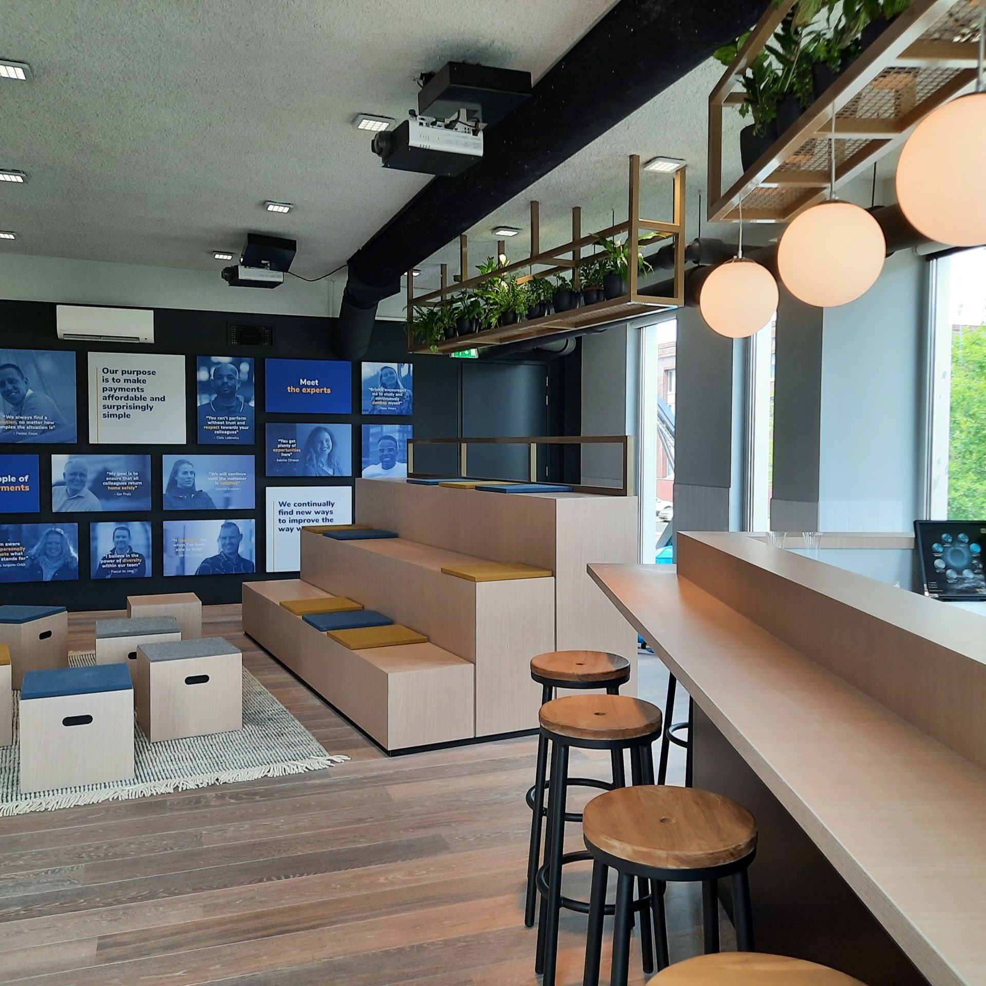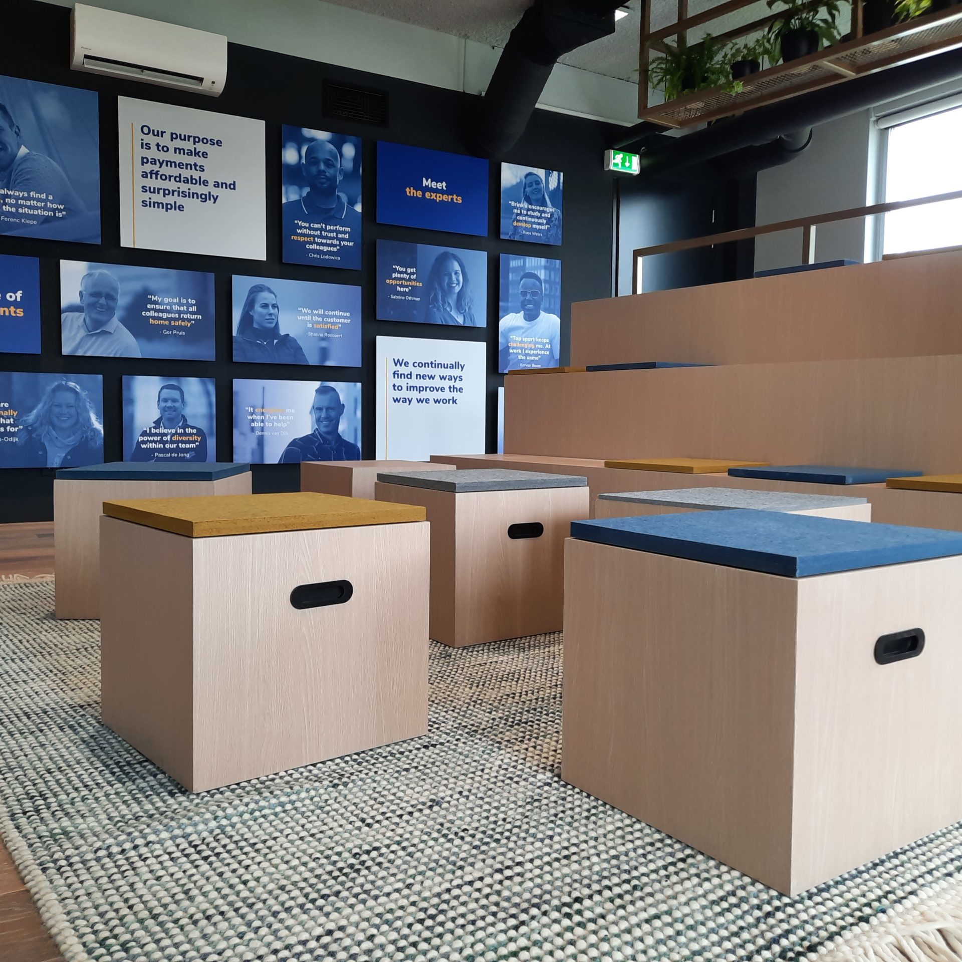 Binnen dit project waren wij verantwoordelijk voor het complete interieur. Van wanden tot vloeren. Van nieuw te maken meubilair tot het aanpassen van bestaande elementen. Wanden voorzien van prints, magneet behang en naadloos foto behang. We maakte de kluisjes wand waarbij we de aansturing hiervan hebben vervaardigd is samenwerking met Tijso. Kortom Brinks in een compleet nieuw jasje.
