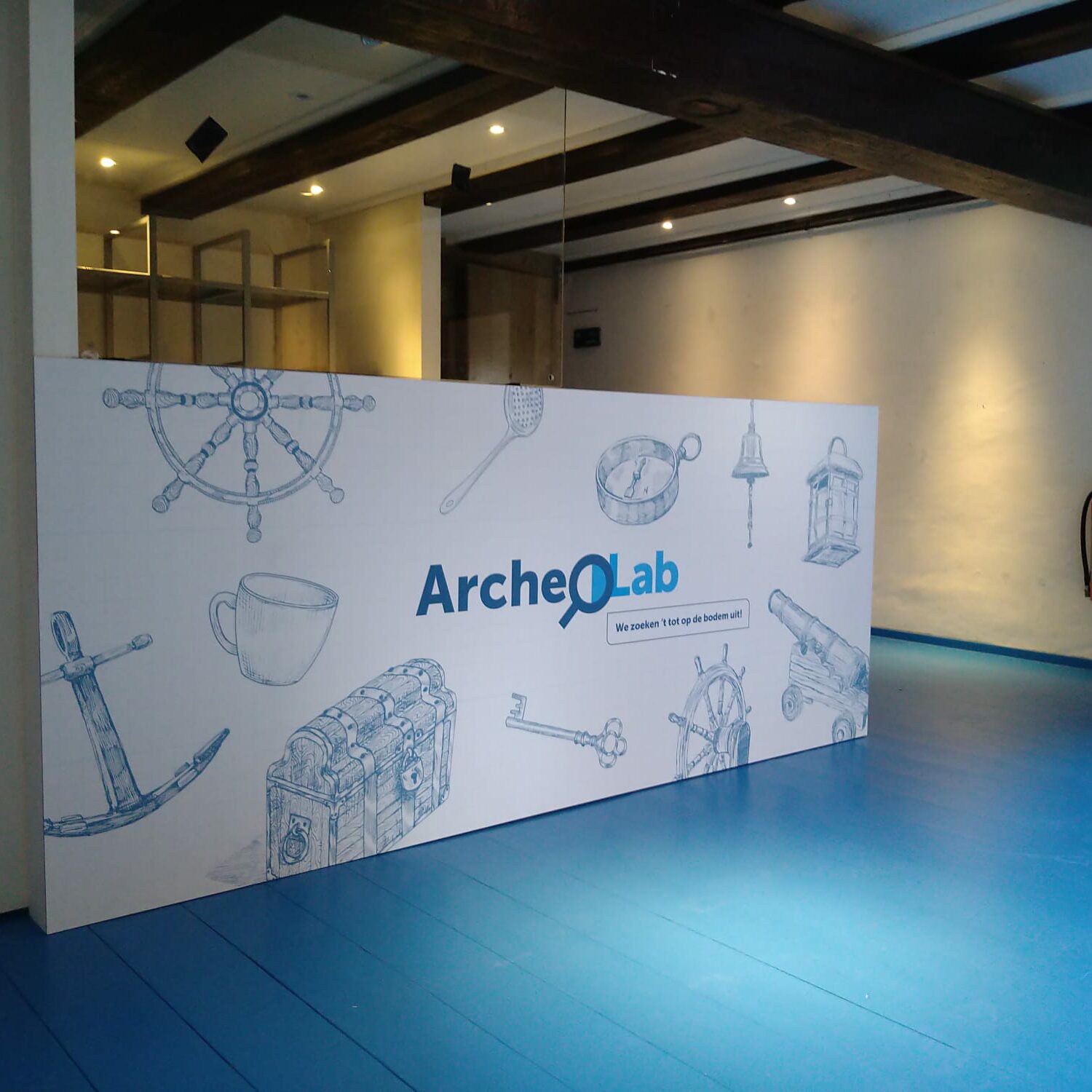 In het graanpakhuis naast de monumentale molen zijn sinds kort het Archeolab en het Open Depot gevestigd. In deze ruimtes hebben we mooie nieuwe wandletter, tekstpanelen en grafische wandbekleding mogen plaatsen.