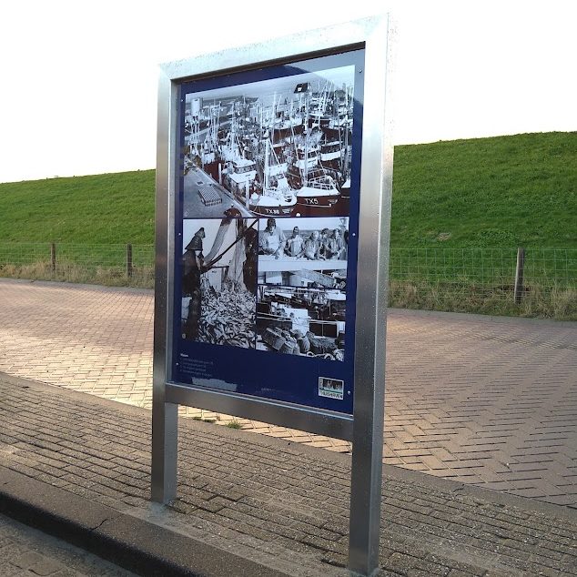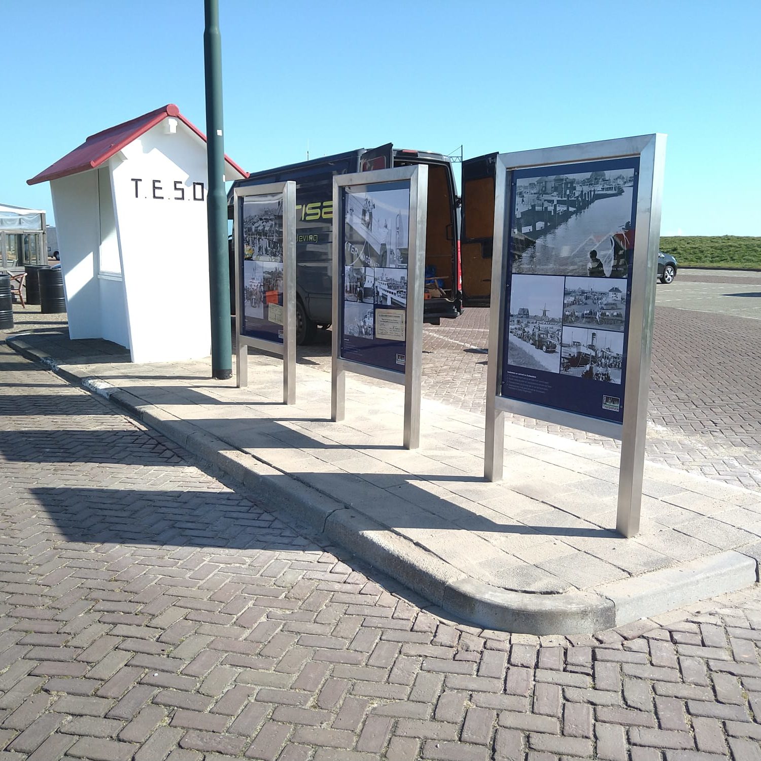 Om het verhaal van de haven te vertellen hebben we mooie RVS frames geplaatst met daarin gesublimeerde aluminium borden. Afhankelijk van de locatie waar deze borden zijn geplaatst is er een stukje achtergrond informatie te zien en te lezen over het gebruik van dit deel van de haven.