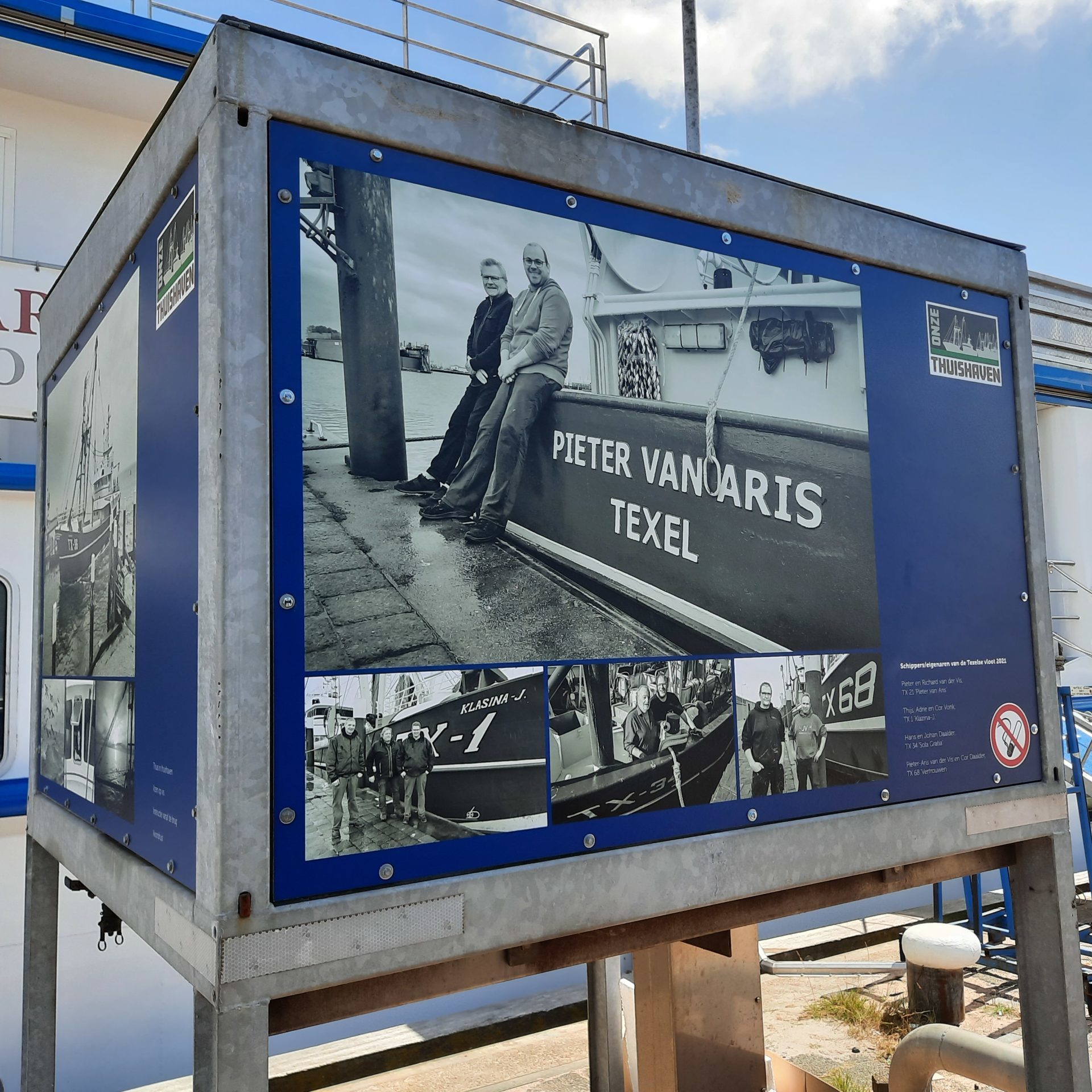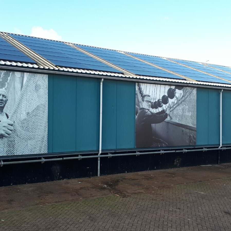 Januari 2023 hebben we nog een paar karakteristieken vissers portretten van groot formaat geplaatst op de zijde van het CIV gebouw op de haven. Dit gebouw is de thuisbasis voor allerlei werkzaamheden die gedaan worden aan de vissersschepen. Met hun werkplaats gelegen aan de ligplaatsen van de vissersschepen kunnen ze snel van dienst zijn. Tevens hebben zij een prachtige winkel.