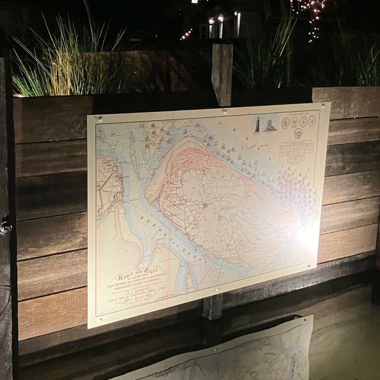 Op de achterzijde van het eiland in de fontein vind je ook de wrakkenkaart van toen. En waarom er in die tijd ongelofelijk veel schepen vergingen voor de Texelse kust.